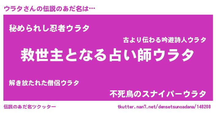 | ヒーロー風カッコイイあだ名 | 『慈愛の使者ウラタ』『仮面ウラダー』 |