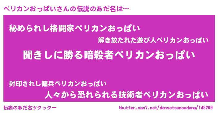 | ヒーロー風カッコイイあだ名 | 『ネオペリカンオッパイ』『仮面ペリダー』 |