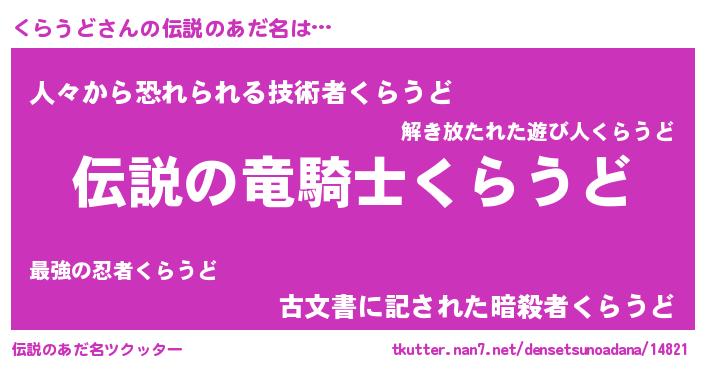 | 男性向けラノベタイトル風あだ名 | 『くらうどの憂鬱』『魔弾の王とくらうど』 |