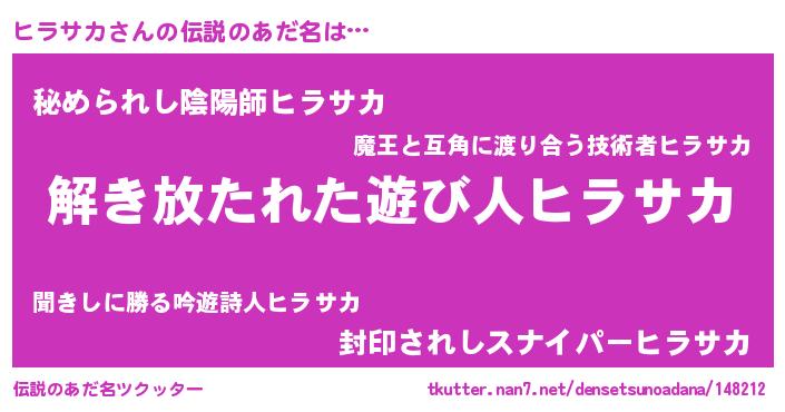 | ヒーロー風カッコイイあだ名 | 『幻影騎士ヒラ』『ウルトラヒラサカマン』 |