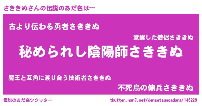 | 意味不明あだ名 | 『さききぬフォーエバー』 |