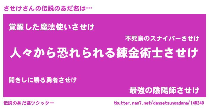 | ヒーロー風カッコイイあだ名 | 『正義の使者させけ』『炎刃騎士サセ』 |