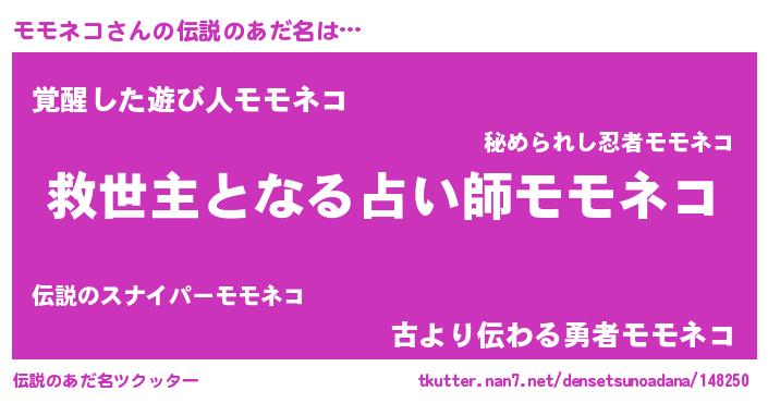 | ヒーロー風カッコイイあだ名 | 『慈愛の使者モモネコ』『炎刃騎士モモ』 |