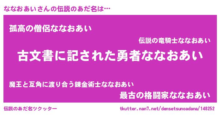 | 意味不明あだ名 | 『住所不定無職ななおあい(81歳)』 |