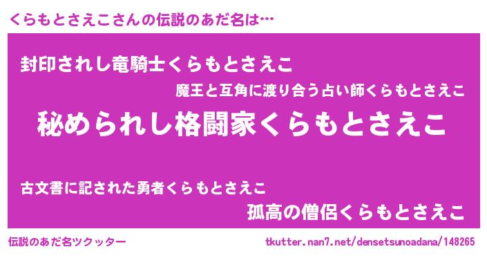 | 意味不明あだ名 | 『住所不定無職くらもとさえこ(6歳)』 |