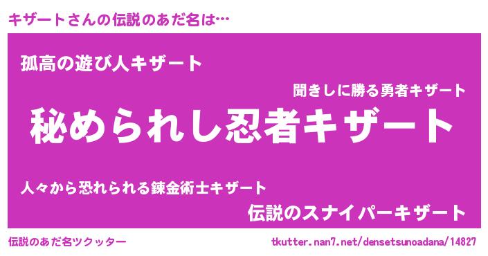 | 意味不明あだ名 | 『住所不定無職キザート(68歳)』 |