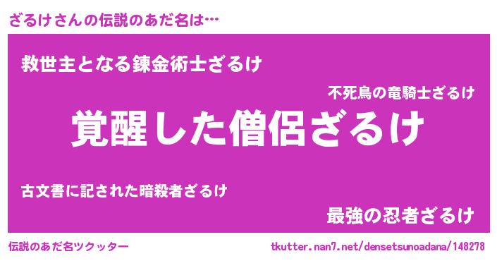 | 男性向けラノベタイトル風あだ名 | 『この素晴らしい世界にざるけを!』 |