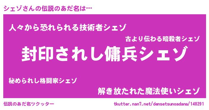 | 意味不明あだ名 | 『ペロリンシェゾ』『自称シェゾ』 |