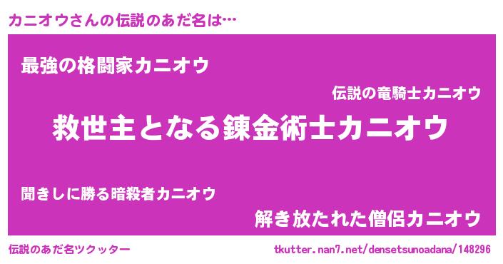 | 男性向けラノベタイトル風あだ名 | 『ノーゲーム・ノーカニオウ』 |