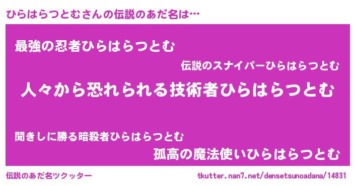 | ヒーロー風カッコイイあだ名 | 『正義の使者ひらはらつとむ』 |