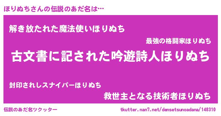 | 男性向けラノベタイトル風あだ名 | 『この素晴らしい世界にほりぬちを!』 |