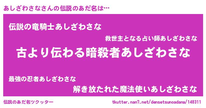 | 意味不明あだ名 | 『自称あしざわさな』 |