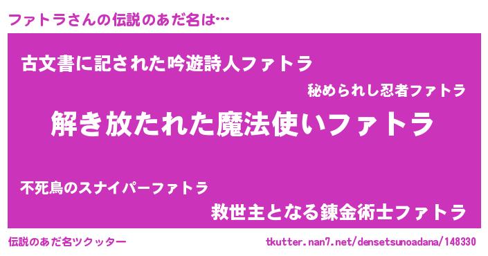 | ポケモン風あだ名 | 『ヒファトラ』『ファゴンZ』 |