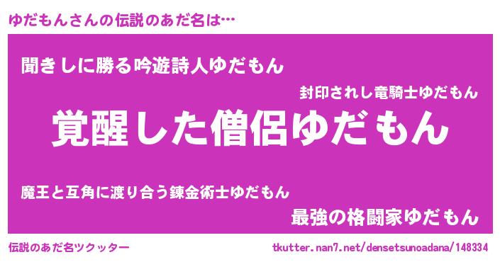 | 男性向けラノベタイトル風あだ名 | 『ゆだもんの嫁は女の子じゃないと思った?』 |