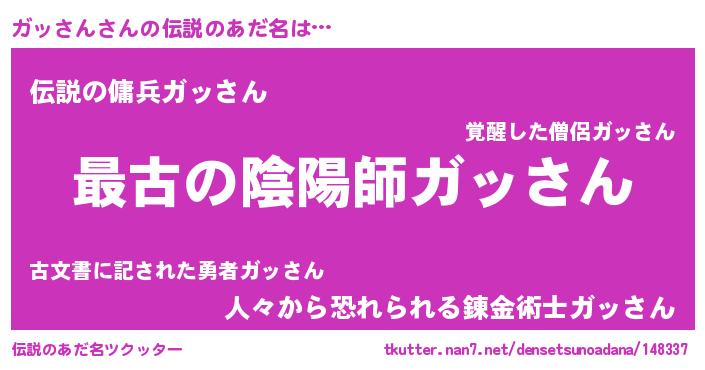 | ヒーロー風カッコイイあだ名 | 『サイバー戦士ガッサン』『仮面ガッダー』 |