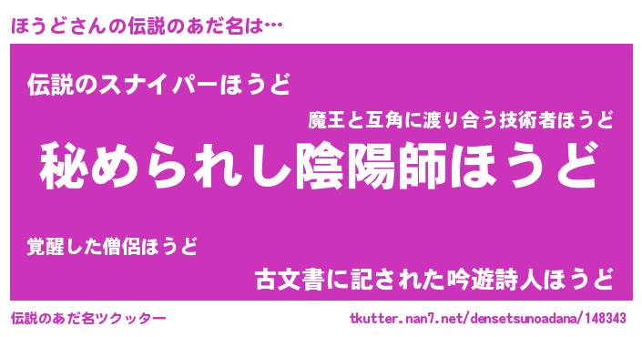| ファンタジー風あだ名 | 『エターナルホウドー』『ホウフェル』 |
