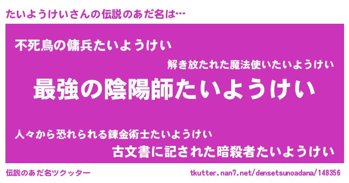 | 肩書あだ名 | 『たいようけい中将』『たいようけい総統』 |