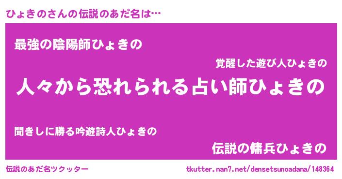 | 男性向けラノベタイトル風あだ名 | 『緋弾のヒョキノ』『魔弾の王とひょきの』 |