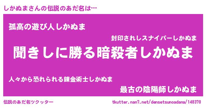| ヘコむあだ名 | 『しかぬま(爆)』『しかを』 |