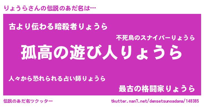 | ヒーロー風カッコイイあだ名 | 『暗黒騎士リョ』『サイバー戦士リョウラ』 |