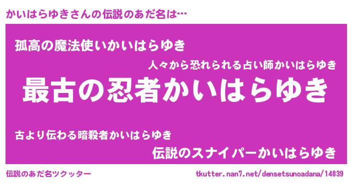 | 意味不明あだ名 | 『かいはらゆきフォーエバー』 |