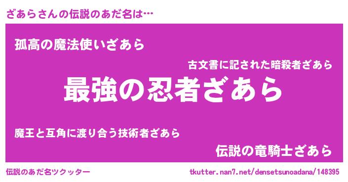 | ヒーロー風カッコイイあだ名 | 『ウルトラざあらマン』『炎刃騎士ザア』 |