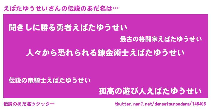 | ヘコむあだ名 | 『えばたゆうせい(遠い目)』『えばぷりん』 |