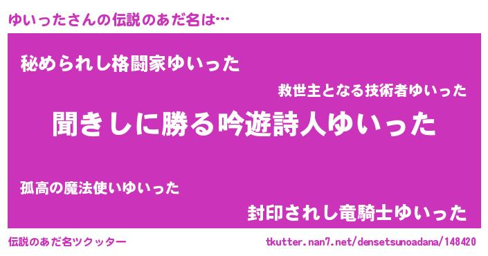 | ファンタジー風あだ名 | 『ユリユイヴァット』『ユイディッシュ』 |