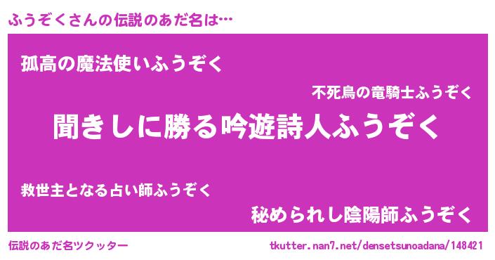 | 意味不明あだ名 | 『永久保存ふうぞく』『自称ふうぞく』 |