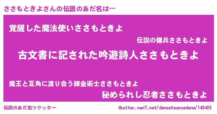 | ヘコむあだ名 | 『ささもときよ(笑)』『ささを』 |
