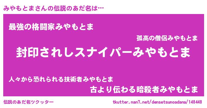 | 胡散臭い通販商品みたいなあだ名 | 『億万長者になれる霊験あらたかなお札…その名も「みやもとま」』 |