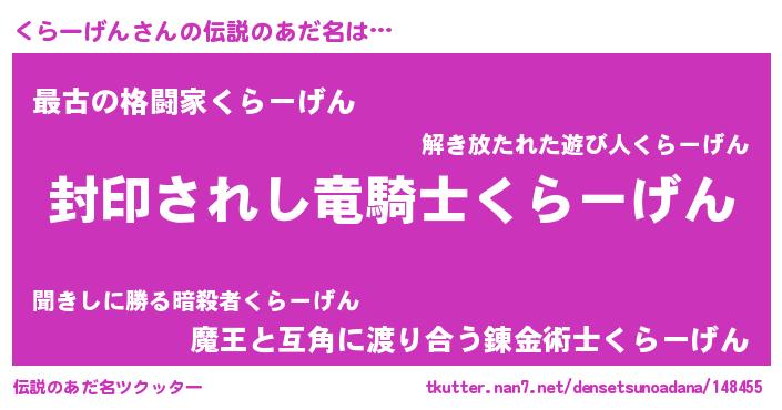 | 胡散臭い通販商品みたいなあだ名 | 『億万長者になれるブレスレット…その名も「くらーげん」』 |