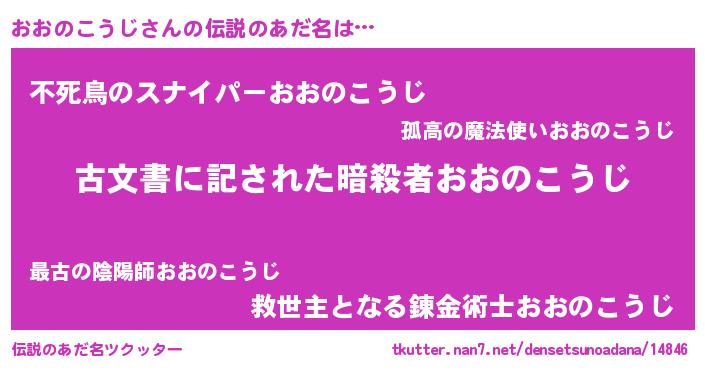 | 意味不明あだ名 | 『住所不定無職おおのこうじ(50歳)』 |