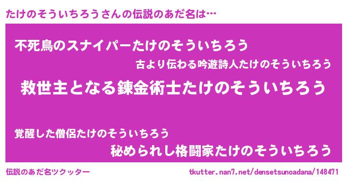 | 意味不明あだ名 | 『眠気覚ましガムたけのそういちろう味』 |