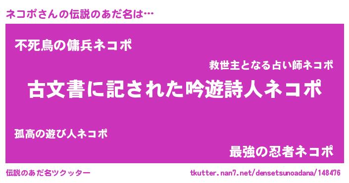 | ヒーロー風カッコイイあだ名 | 『ネオネコポ』『スーパーネコポ』 |