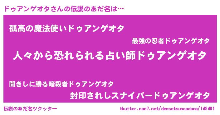 | 恥ずかしいあだ名 | 『ドゥアンゲオタデラックス』 |