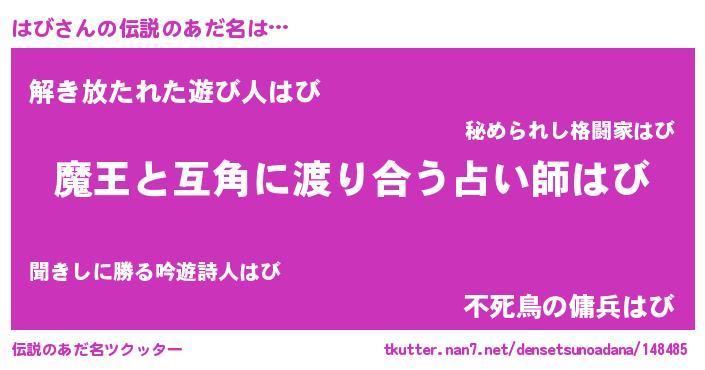 | 意味不明あだ名 | 『自称はび』『めかぶ科はび属』 |