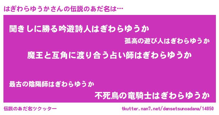| 胡散臭い通販商品みたいなあだ名 | 『お金では代えられないイリジウム磁石…その名も「はぎわらゆうか」』 |