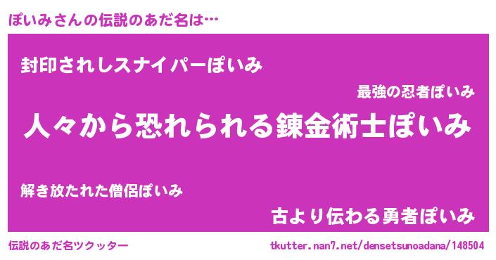 | ヒーロー風カッコイイあだ名 | 『友情の使者ぽいみ』『仮面ポイダー』 |