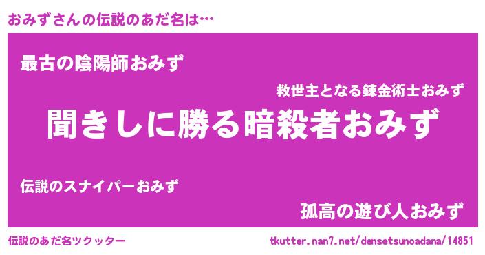 | ファンタジー風あだ名 | 『オミディッシュ』『エターナルオミズー』 |