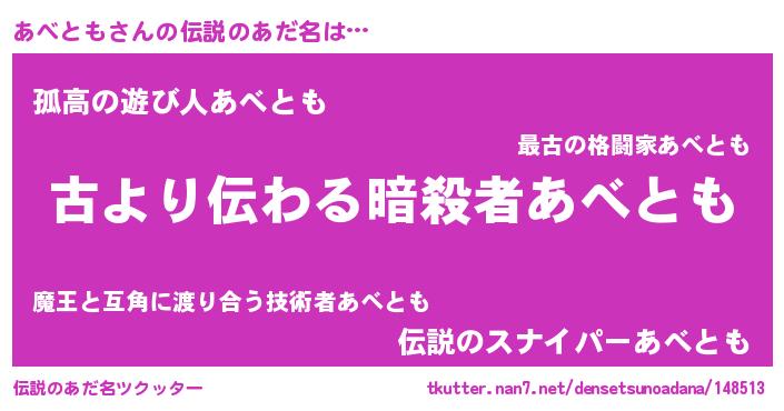 | 意味不明あだ名 | 『住所不定無職あべとも(62歳)』 |