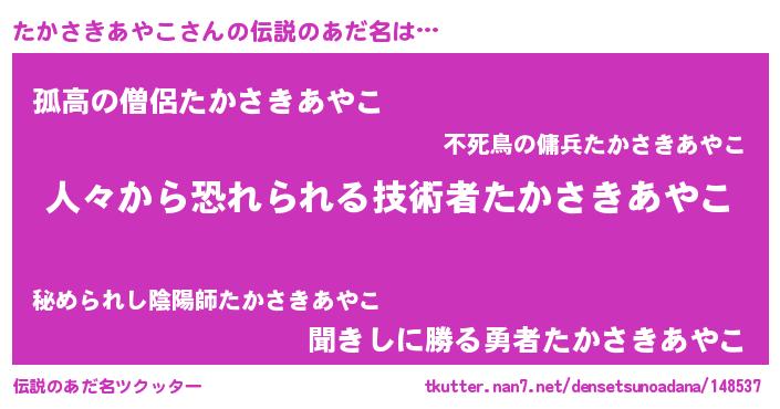 | 男性向けラノベタイトル風あだ名 | 『タカサキアヤコスレイヤー』 |