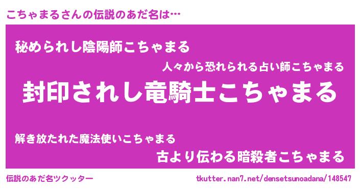 | ファンタジー風あだ名 | 『コチフェル』『エターナルコチャマルー』 |