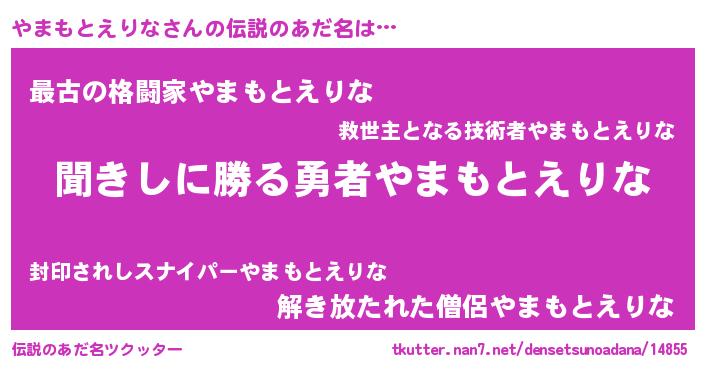 | 男性向けラノベタイトル風あだ名 | 『ヤマモトエリナスレイヤー』 |