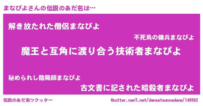 | 女子向けラノベタイトル風あだ名 | 『まなぴよ恋絵巻』『闇のまなぴよ』 |