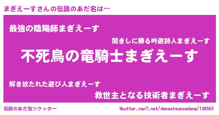 | 肩書あだ名 | 『まぎえーす船長』『まぎえーす御曹司』 |