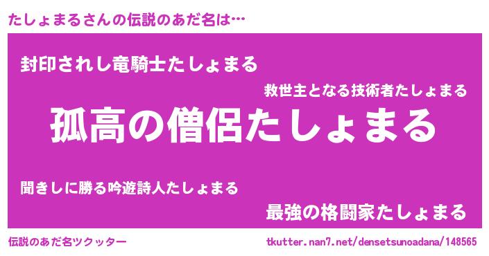 | 男性向けラノベタイトル風あだ名 | 『魔弾の王とたしょまる』 |