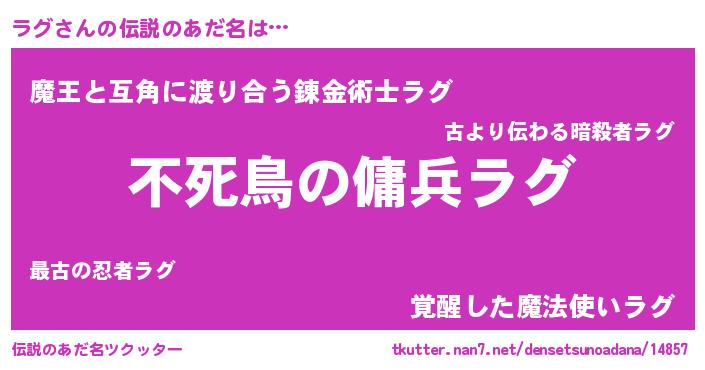| ファンタジー風あだ名 | 『ゼラグトゥ』『ラグフェル』 |