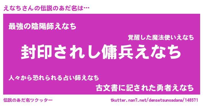 | 男性向けラノベタイトル風あだ名 | 『えなちに滅ぼされるだけの簡単なお仕事です』 |