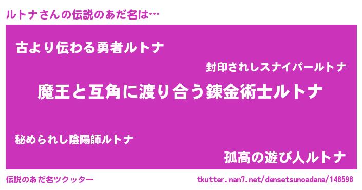| ヘコむあだ名 | 『ルトナ(苦笑)』『ルトぷりん』 |